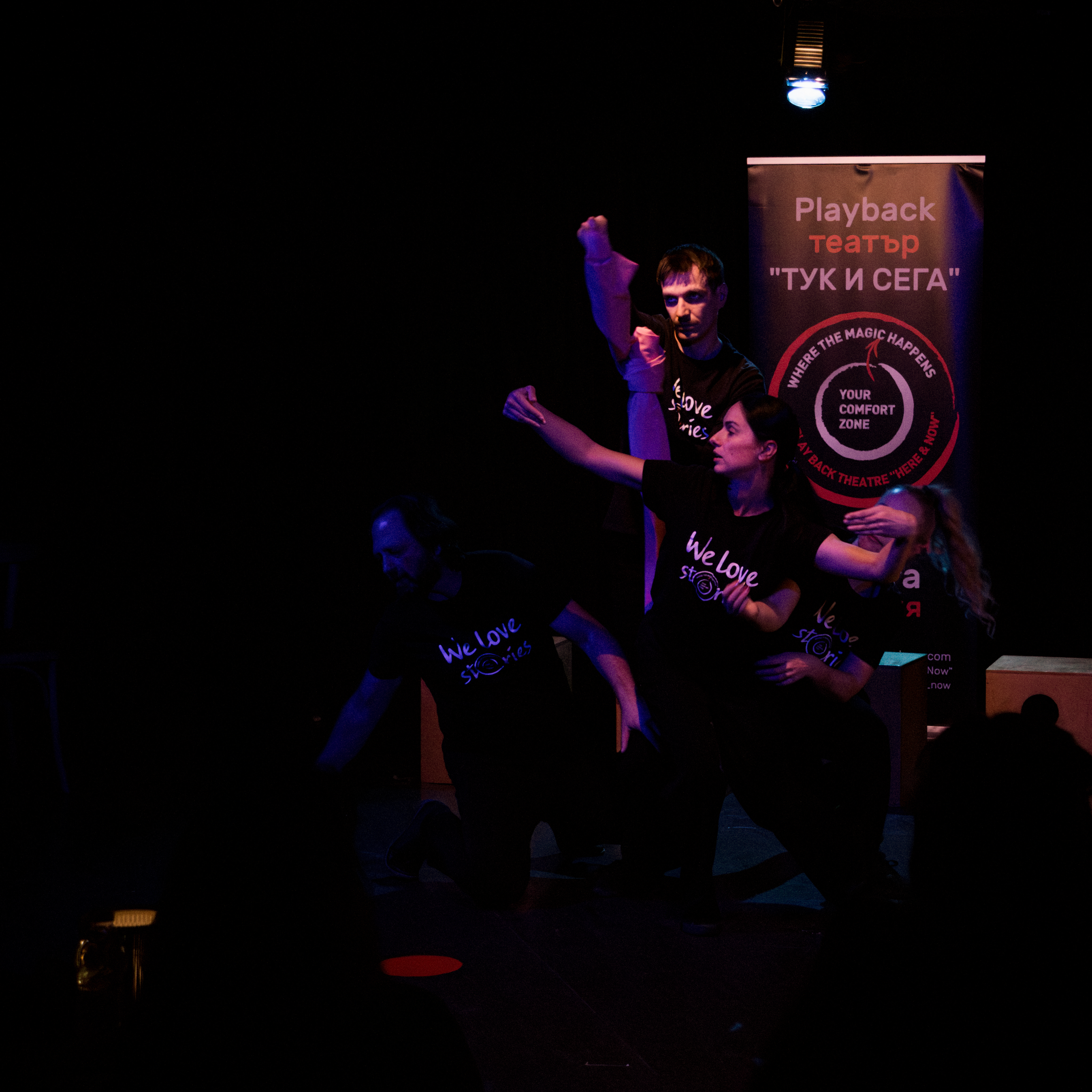 🔹 Този спектакъл събра уникален сборен екип от 7 различни Playback трупи в България:🎭 Playback Theatre “Here and Now”🎭 Playback театър „Storycatchers“🎭 Playback Theatre “Tell Me”🎭 Playback Theatre “”TwoGather”🎭 Playback театър „Варна“🎭 Playback театър „Персона“🎭 Playback Duet „Why not“